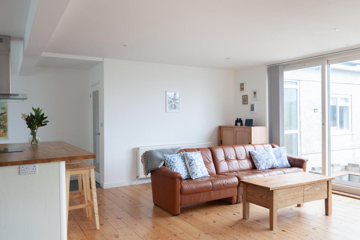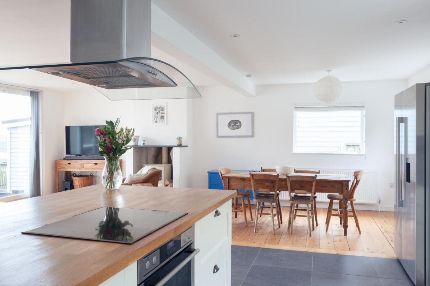 A recently renovated holiday home located in Bigbury, Modern Beach House overlooking the Sea features a garden. This beachfront property offers access to a balcony, free private parking and free WiFi. Outdoor seating is also available at the holiday home.