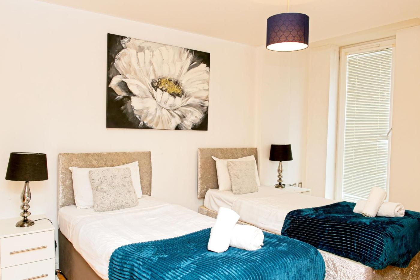 Two-Bedroom Apartment. This property will not accommodate hen, stag or similar parties. This apartment is located in a residential block and guests are asked to keep noise to a minimum after 21:00. Visitors are strictly not permitted. If you violate this rule, you may be asked to leave without a refund. This property will not tolerate anti-social behavior. Kindly note, the guest is liable for any damages made to the property by themselves during their stay, and will be charged for damages if necessary. Please note that this property operates a strict no smoking policy. A penalty fee of GBP 150 will be charged to guests who smoke in the property. Guests are permitted to smoke outside the building only. Please dispose of cigarette ends. A late check-in fee of GBP 30 will apply from 20:00 to 22:00. After 22:00, an additional fee of GBP 20 an hour will apply. Please note that early check-in and late check-out is possible for an additional fee, subject to availability. Please note,guest must be 22 years and older, apart from families staying with children. Please inform City Center Apartment in advance of your expected arrival time. You can use the Special Requests box when booking, or contact the property directly with the contact details provided in your confirmation. This apartment has a microwave, sofa and toaster.