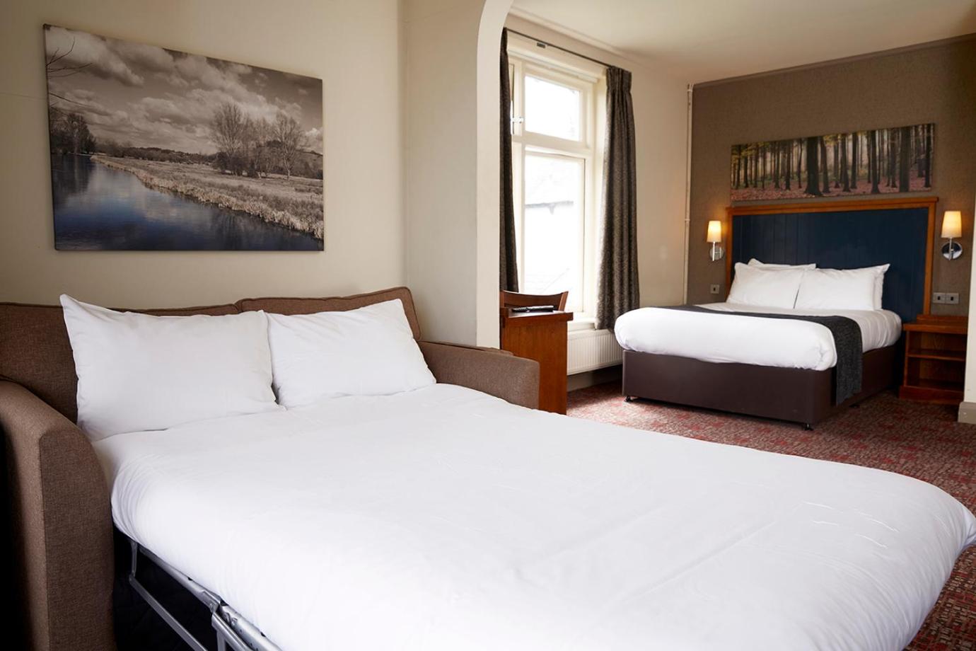 The Chef & Brewer pub serves classic British cuisine for lunch and dinner. Hearty breakfasts are available daily, and guests can also dine in the leafy beer garden.