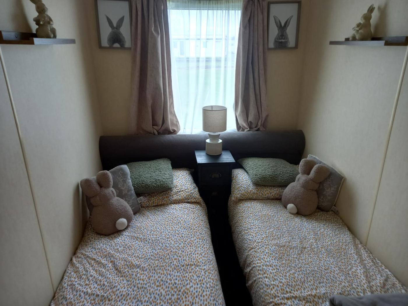 Caravan. This mobile home includes 1 living room, 2 separate bedrooms and 1 bathroom with a shower and a hairdryer. The mobile home offers a flat-screen TV, a seating area, a dining area, a wardrobe as well as garden views. The unit has 4 beds.