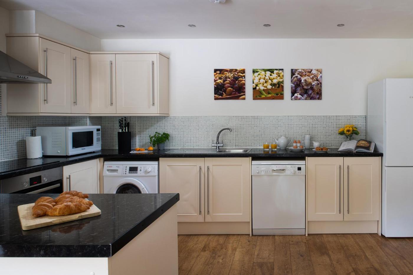 Three-Bedroom House. Featuring a private entrance, this holiday home is comprised of 1 living room, 3 separate bedrooms and 2 bathrooms with a bath and a shower. Guests will find a stovetop, a refrigerator, a dishwasher and kitchenware in the kitchen. The holiday home also has a barbecue. This holiday home features a washing machine, flat-screen TV with streaming services, garden views, as well as winechampagne for guests. The unit offers 4 beds. ;