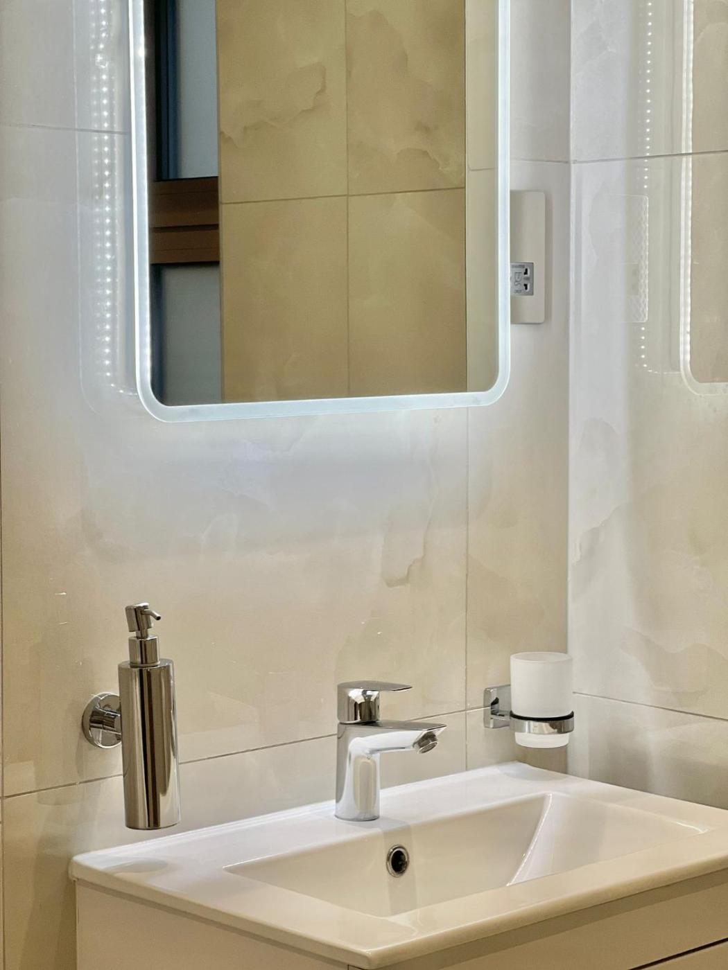 One-Bedroom Apartment. Boasting a private entrance, this apartment comes with 1 living room, 1 separate bedroom and 1 bathroom with a bath and a shower. In the kitchen, guests will find a stovetop, a refrigerator, kitchenware and an oven. The apartment features a washing machine, soundproof walls, a dining area, a wardrobe and a flat-screen TV with satellite channels. The unit has 2 beds.