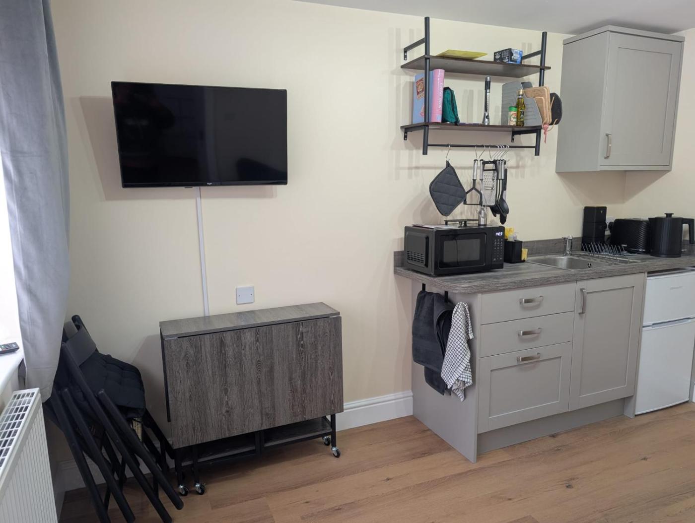 One-Bedroom Apartment. In the well-equipped kitchenette, guests will find a refrigerator, kitchenware, a microwave and a toaster. This wheelchair accessible apartment has a private entrance, a seating area with a flat-screen TV and a roll-in shower. The unit has 1 bed.